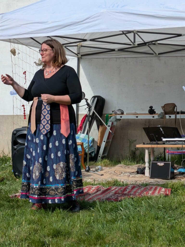 Le 13 avril 2025, mes histoires ont voulu prendre l’air dans un jardin magique où les spectateurs se sont rassemblés pour entendre du chant, de la musique, du théâtre et mes contes.